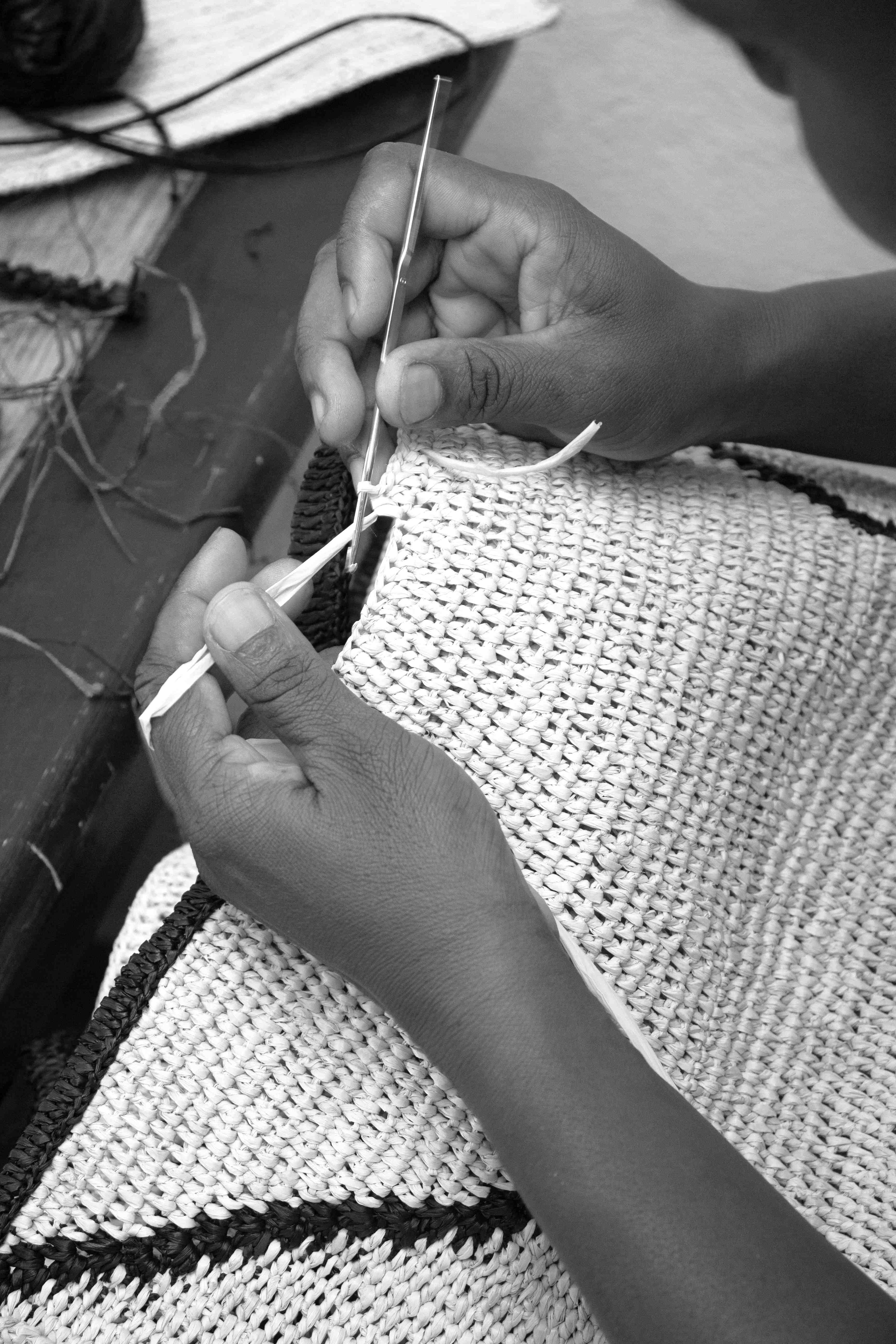 The workshop is in Madagascar and employs mostly women. The collections are all about luxury from the materials we use to the details meticulously handmade by our talented artisans. That is why we share our love for natural materials native to Madagascar like raffia, cotton and silk.